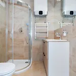 Willa Domki przy plaży Owocowy Ogród oferuje patio i balkon, zestaw do prasowania i klimatyzację oraz takie udogodnienia multimedialne jak telewizja kablowa z dostępem do filmów. We wnętrzu znajdują się sofa i biurko do pracy, a także okna dźwiękoszczelne. W łazience znajdują się kabina prysznicowa walk-in i oddzielna toaleta, suszarka do włosów i ręczniki.